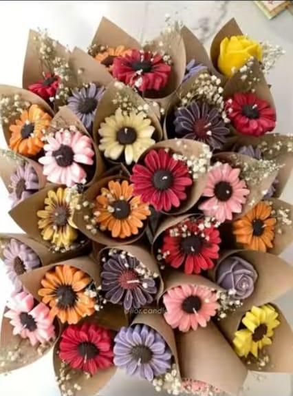 We offer a beautifully crafted Daisy Flower Bouquet Candle, handmade in India with glossy finishing. This multicolor candle is made from soy wax, shaped like a flower, and has a cotton wick for up to 30 hours of burning time. Packaged in a carton box, this plain patterned candle is perfect for adding a touch of elegance to any space. Ideal for both personal use and gifting, our unique candle is a must-have for those who appreciate quality craftsmanship.